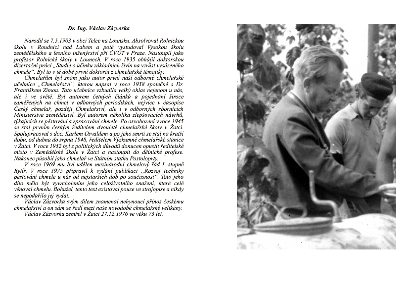 Rozvoj techniky pěstování chmele u nás - Dr. Ing. Václav Zázvorka